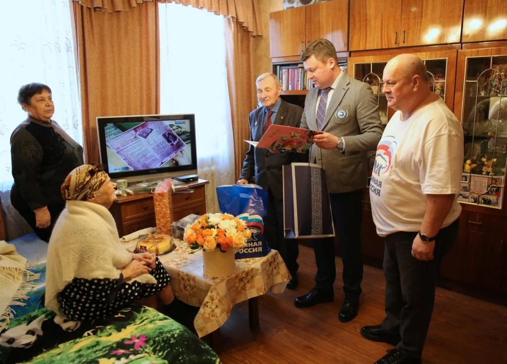 Председатель Думы Калуги Юрий Моисеев, его первый заместитель Сергей Павлов и председатель совета ветеранов Евгений Янкелевич поздравили юбиляра, вручили Анне Спиридоновне цветы и подарки, пожелали крепкого здоровья, счастья, мира, семейного тепла и благополучия, бодрости и активного долголетия.