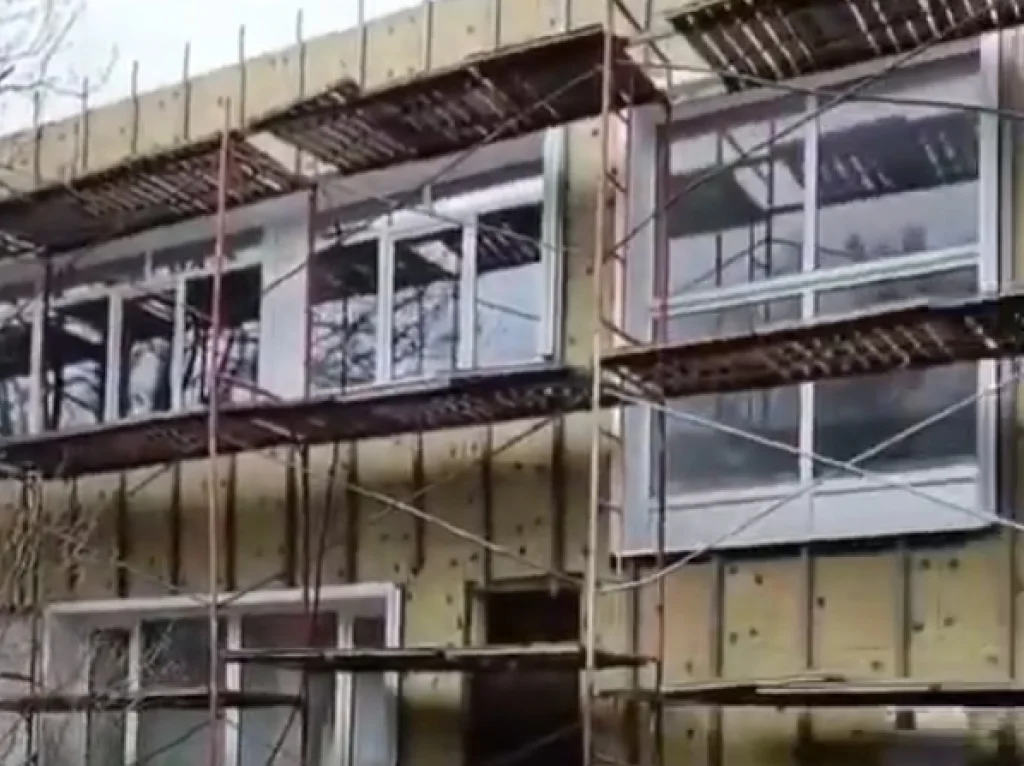 Подрядчики уже приступили к укладке фасадной плитки и одновременно ремонтируют канализационные сети по всему периметру здания. Внутри помещений электрики разводят проводку по группам, готовят потолки к монтажу, а также устанавливают новые входные двери.
