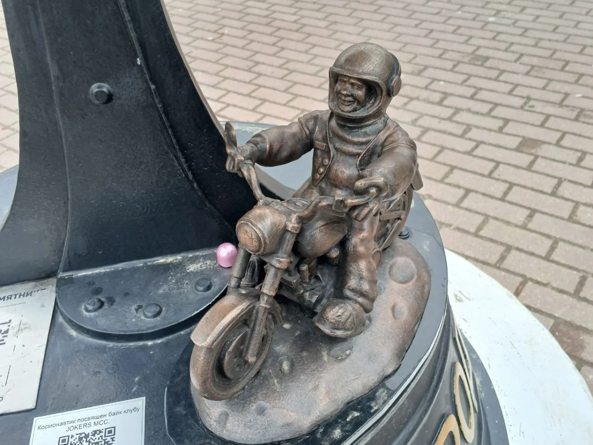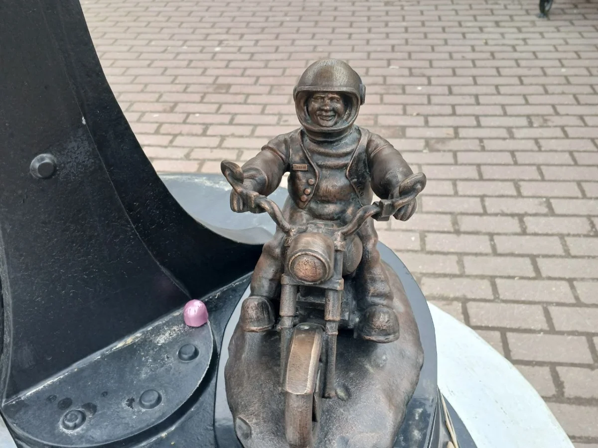 На днях байкерский клуб установил фигурку мотоциклистка у подножия глобуса в сквере на Ленина, 96а.