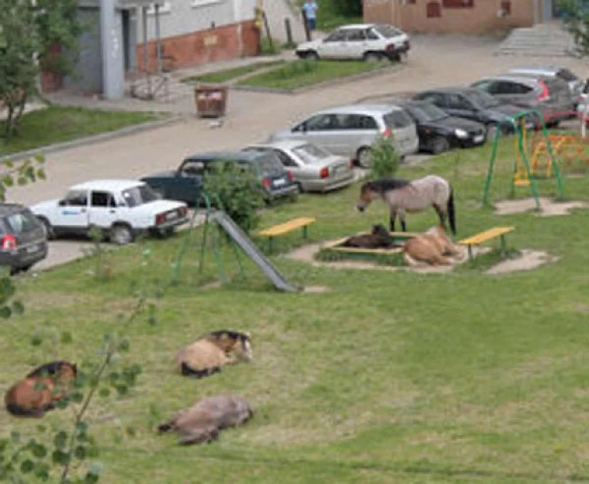 На минувшей неделе мы уже сообщали, что по калужскому микрорайону Байконур разгуливают лошади. Животные не только пугают прохожих, но создают помехи автомобилистам. Во вторник, 11 июня, наша читательница сообщила в редакцию, что теперь лошади захватили и детские песочницы на Кубяке.