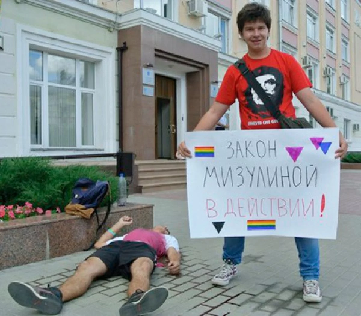 На днях перед мэрией наукограда два приятеля нетрадиционной ориентации - Павел и Кирилл устроили представление. Облили себя якобы бычьей кровью (она, по словам очевидцев больше напоминала вишневый сок)  и начали скандировать лозунги в защиту гомосексуалистов.