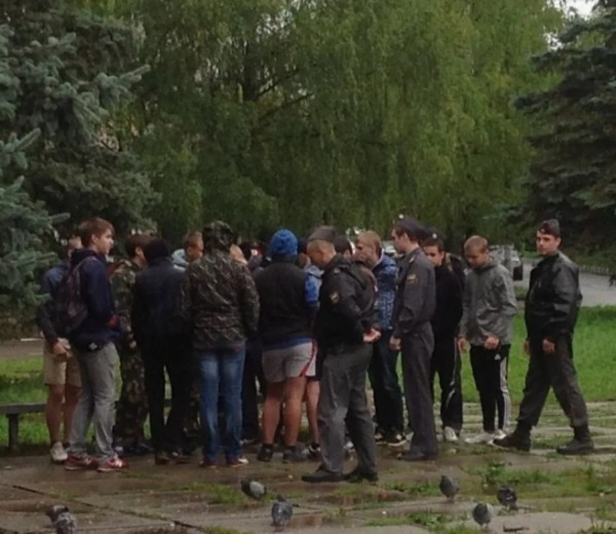 Полиция принялась вызывать подкрепление и через 7 минут у фонтана окружила и задержала всех, кто пришел подавлять гей-парад. Толпу молодежи загрузили в «Газель» и с сиреной увезли в участок, написали «ВКонтакте».