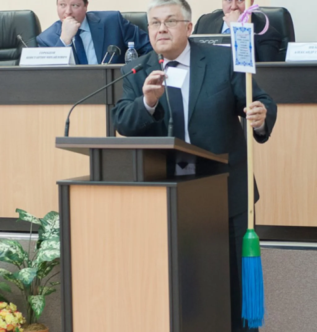 В конце Александр Скуборев поощрил лучшие управляющие компании дипломами, а затем вручил премию «Синяя метла» компаниям, находящимся в конце рейтинга.