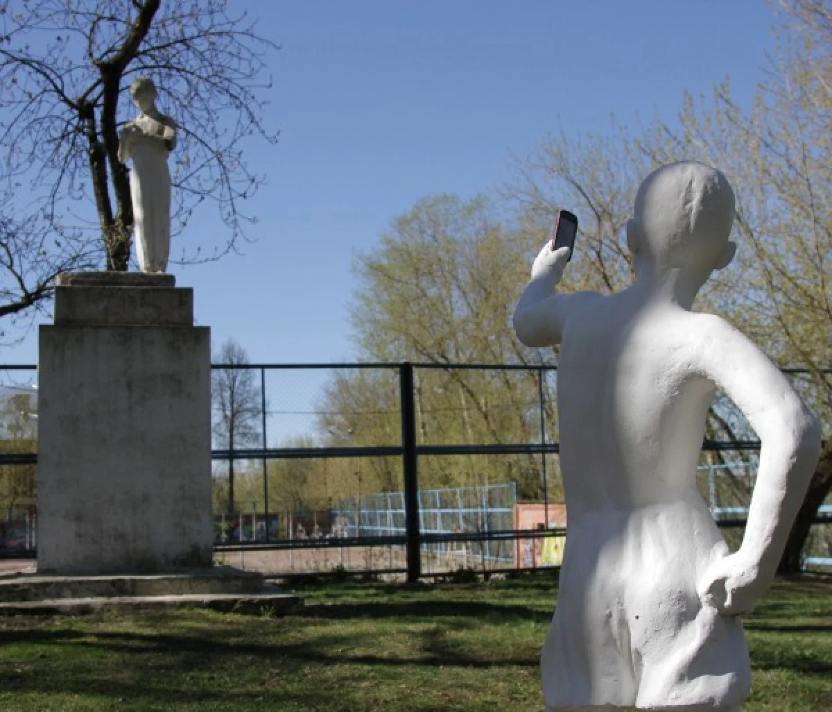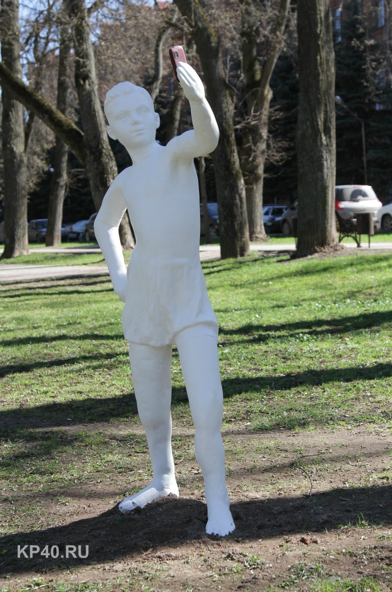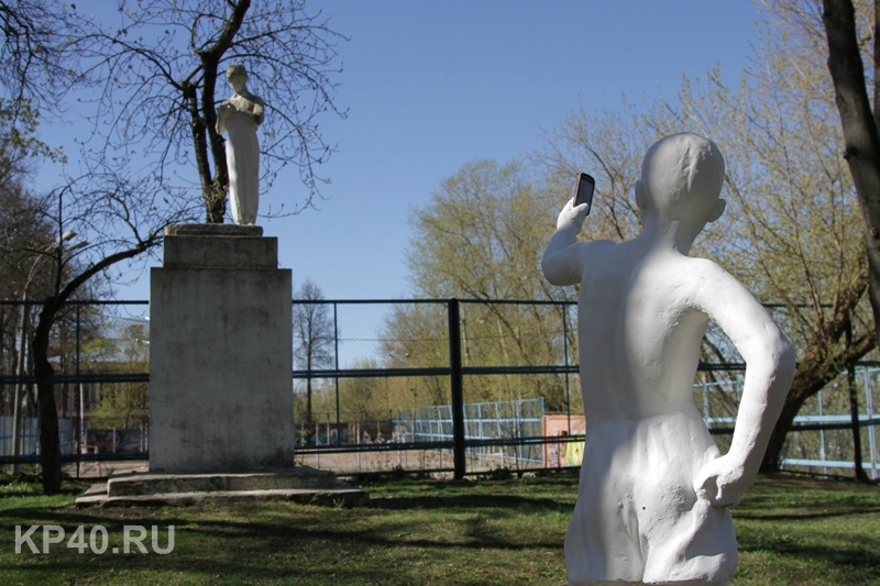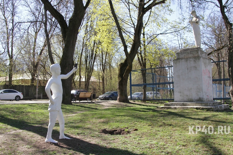 Очередная скульптура неизвестного автора появилась в четверг, 24 апреля, рядом с памятником пионеру на улице Карла Маркса в Калуге.