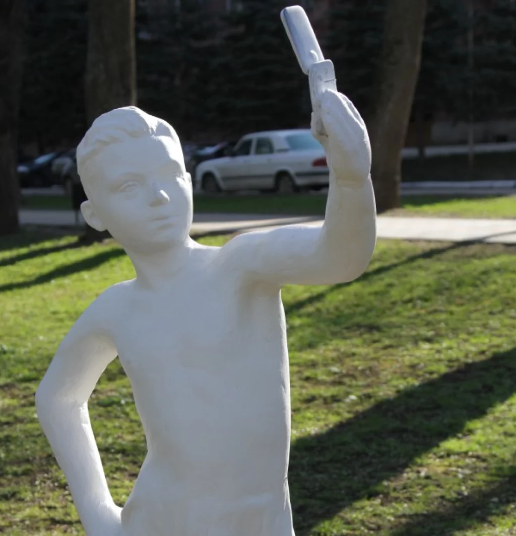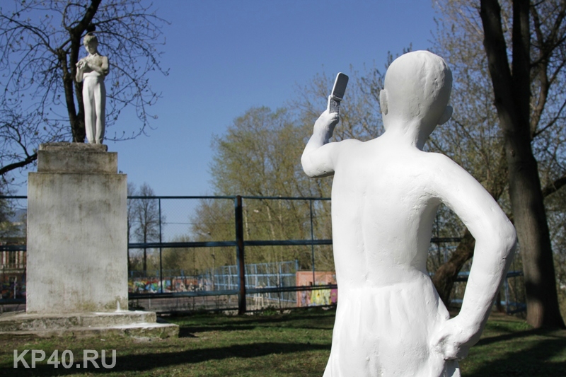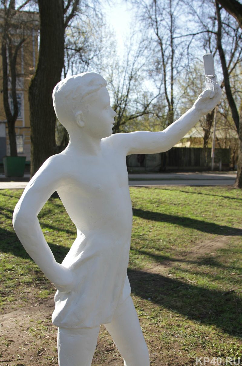 Как мы уже рассказывали, на улице Карла Маркса в Калуге появилась очередная скульптура неизвестного автора - мальчик, фотографирующий памятник пионеру на телефон.