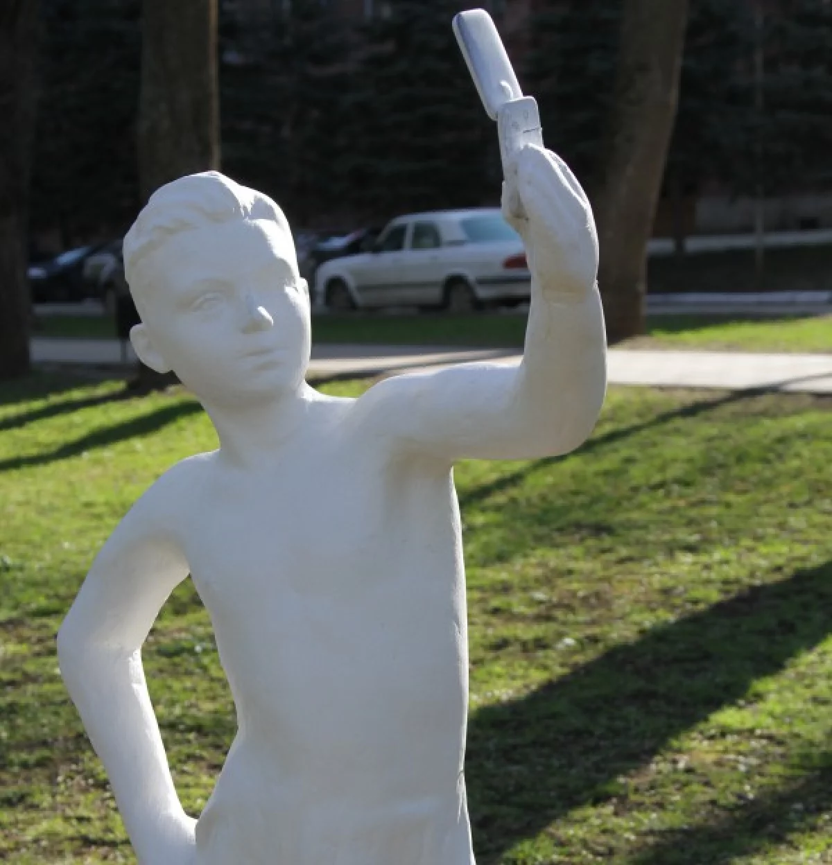 Впрочем, ночью мальчику приделали новый аппарат. Теперь его обмазали гипсом - под цвет скульптуры. Будем надеяться, что этот телефон вандалы обойдут стороной.