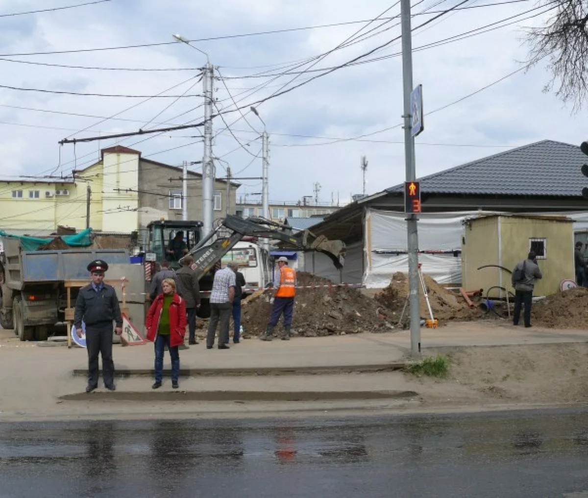 Рабочие рыли траншею на месте будущего мини-рынка.