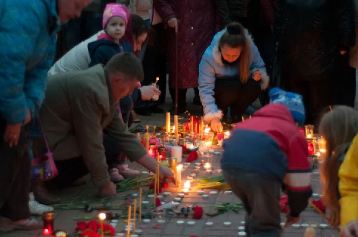 Поминальное траурное мероприятие состоялось вечером в понедельник на площади Победы.