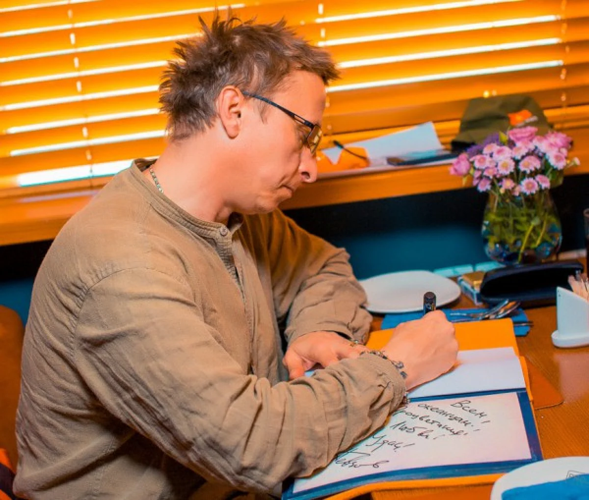 - Актер с энтузиазмом и не без удовольствия приобщился к кухне ресторана, вкусом которой остался очень доволен. – сообщает Николаев. - А после обеда раздал автографы, сфотографировался на память с гостями ресторана и оставил запись в книге отзывов: «Коллективу ресторана «Седьмой океан» любви и терпения! Спасибо, ребята! Храни вас Господь».