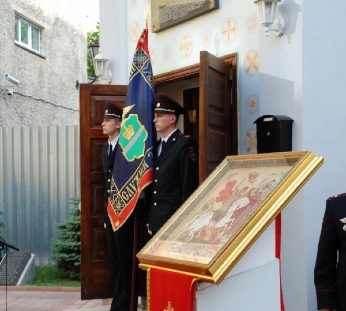 Священнослужители Мещовского Свято-Георгиевского монастыря подарили полицейскому храму икону святого Георгия Победоносца, сообщает пресс-служба УМВД. В завершении мероприятия все желающие поклонились святыне, получили благословение от отца Серафима и поставили свечи в часовне.