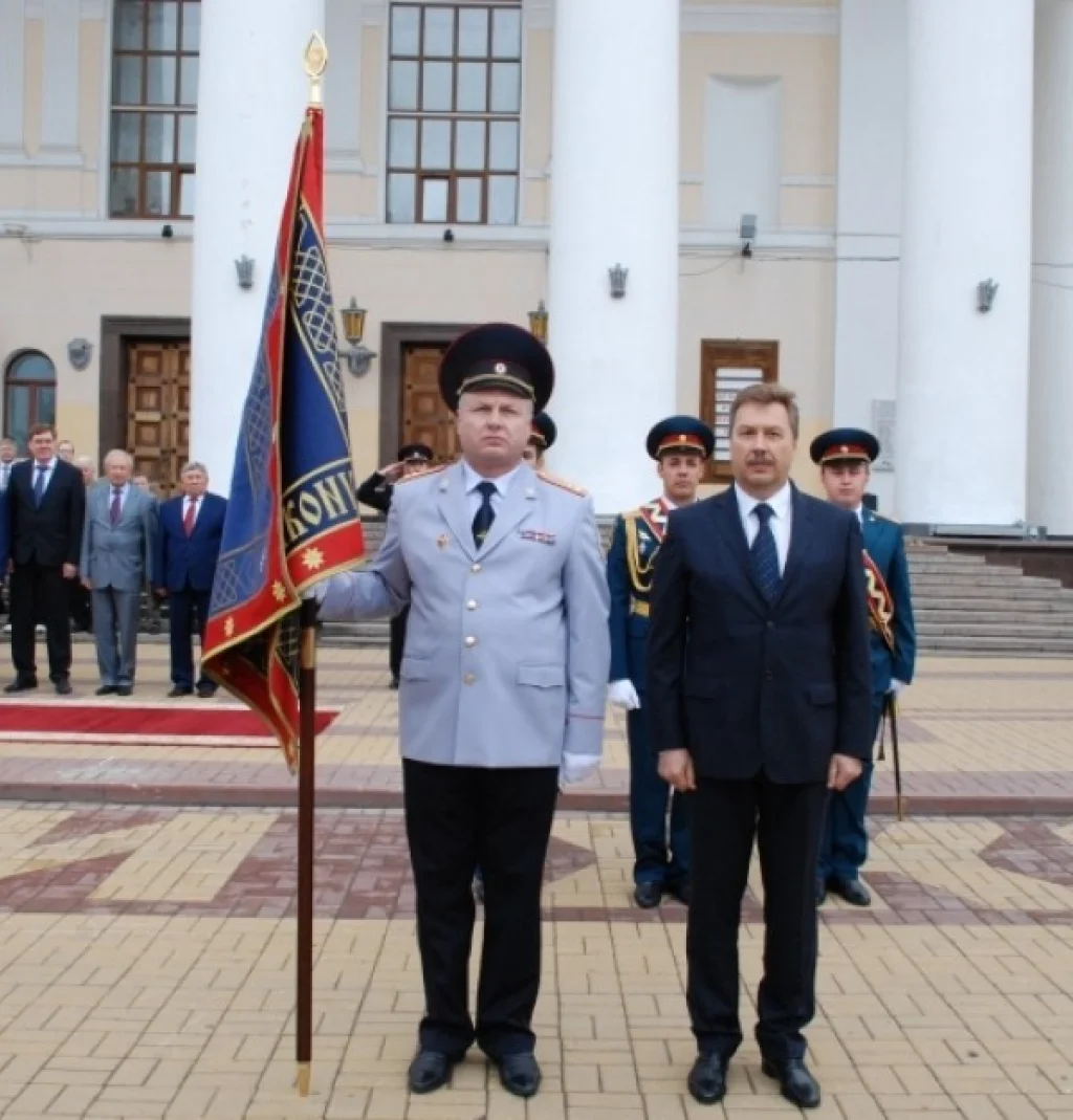 В преддверии 70-летнего юбилея создания УМВД России по Калужской области, который отмечается 13 июля, в Калуге прошел торжественный ритуал вручения знамени управления. Его главному полицейскому региона Сергею БАЧУРИНУ передал заместитель Министра внутренних дел РФ Сергей ГЕРАСИМОВ.