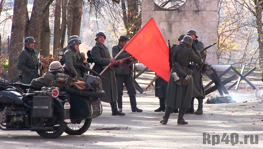 Дальше немцы входят в город и занимают здание, расстреливают сопротивляющихся солдат, снимают со здания красный флаг, фотографируются с ним на память. Но радоваться такому легкому захвату им предстоит недолго. Из-за соседнего здания появляется артиллерия советских солдат и завязывается перестрелка.