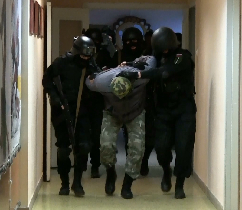 По легенде группа неизвестных захватила здание во время проведения соревнований. Нападавшие выдвинули неприемлемые для руководства страны требования. Чтобы пресечь действия террористов, начальник Управления ФСБ России по Калужской области Владимир БУРЫКИН привел в боевую готовность спецподразделения и принял решение о проведении контртеррористической операции.
