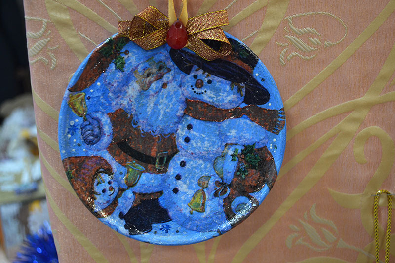 Для оформления резиденции Деда Мороза, которая откроется в субботу, 27 декабря, ребята декорировали посуду.