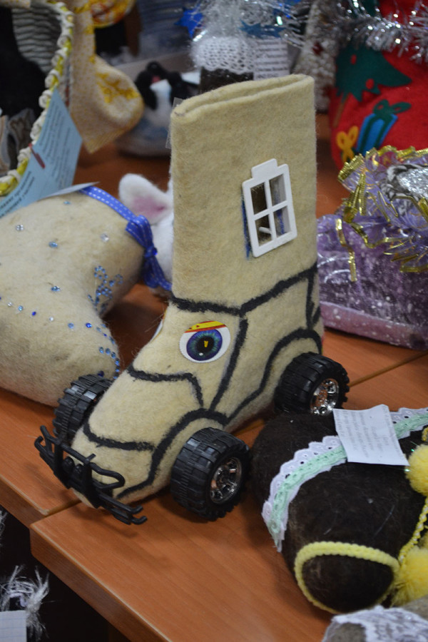 Но и этого участникам выставки показалось мало. Из валенок они смастерили зверюшек.