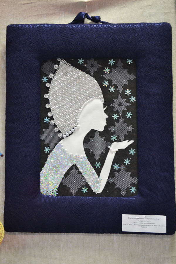 Не забыли и про Снегурочку. Вышили бисером ее портрет.