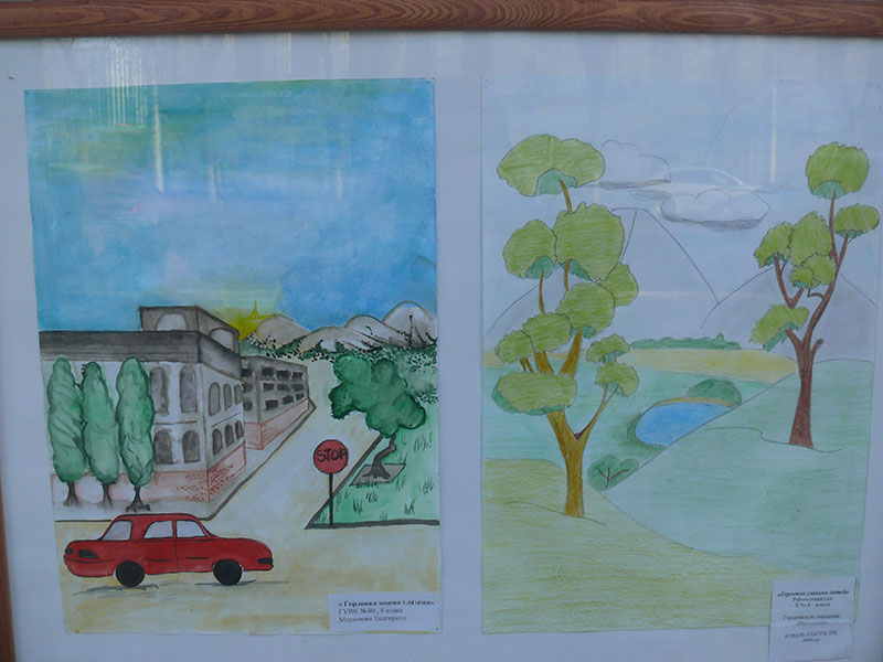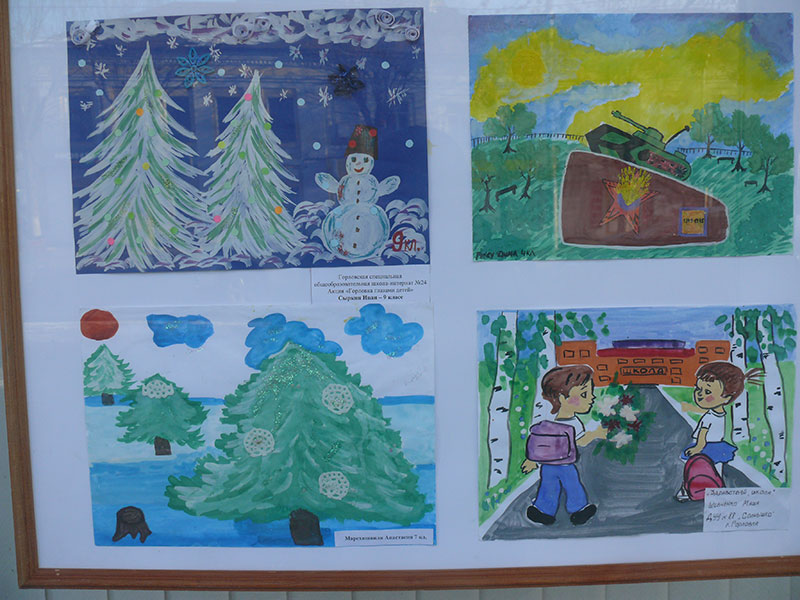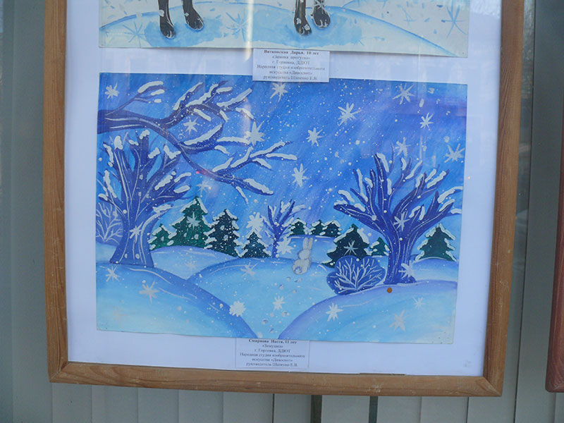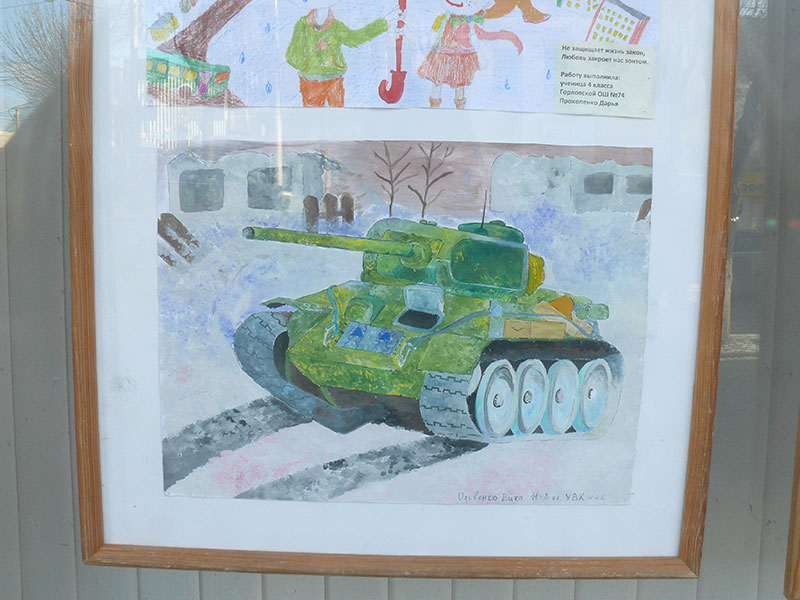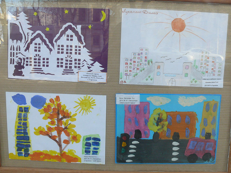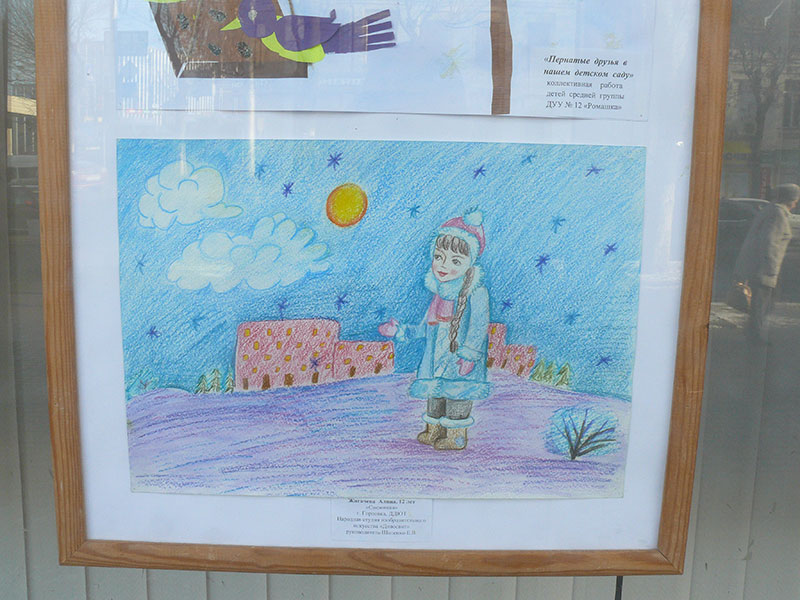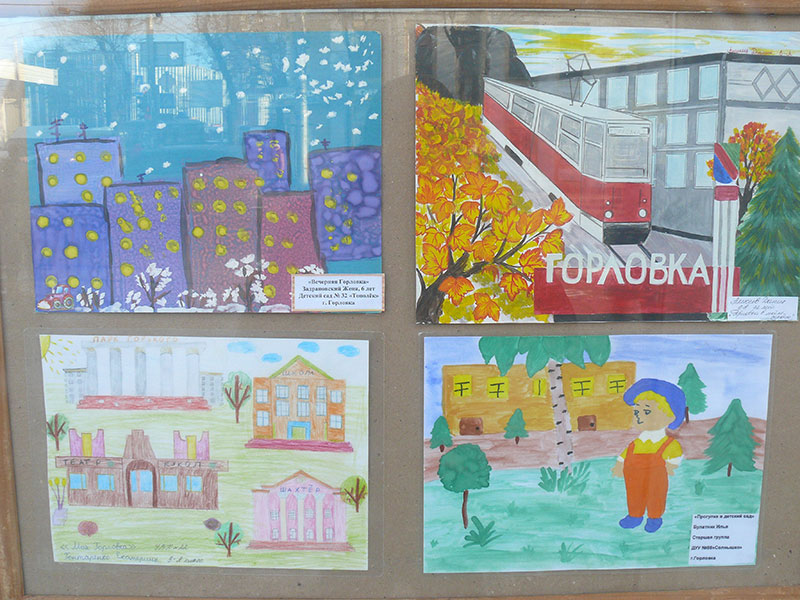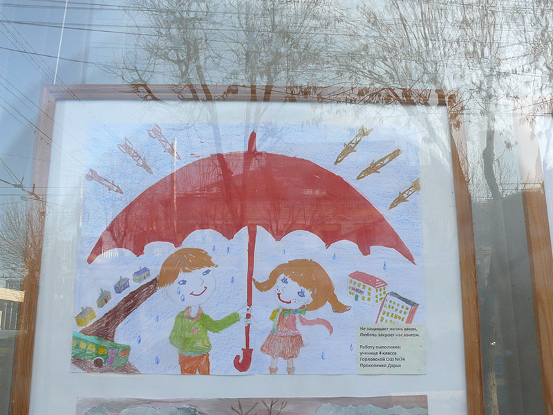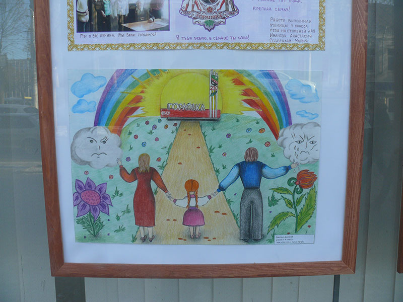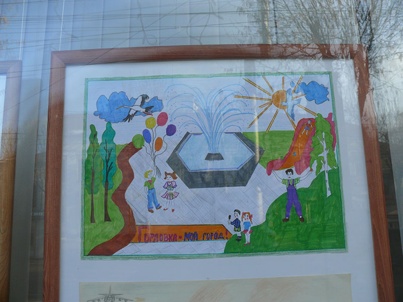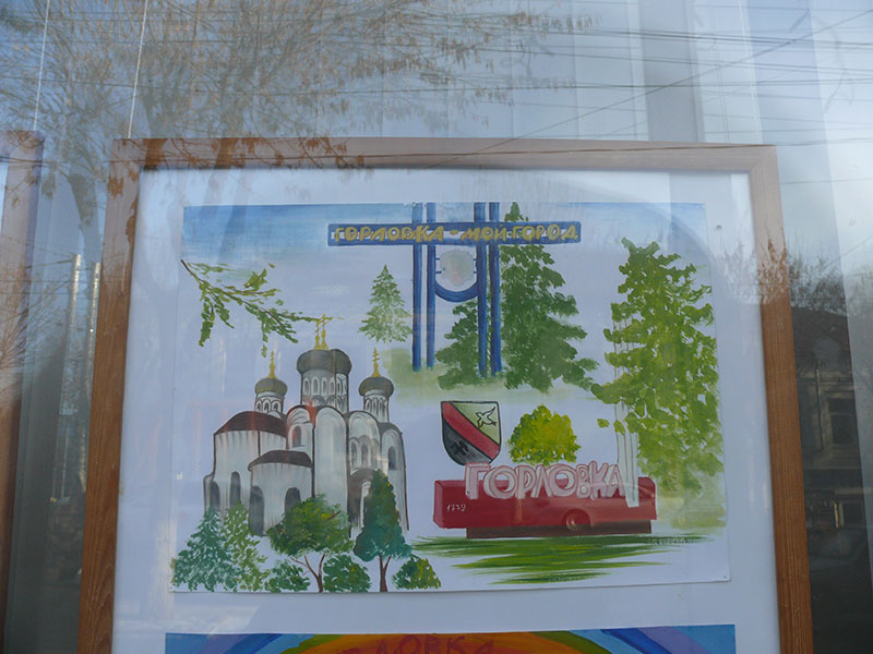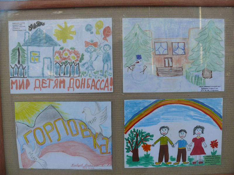 В витринах выставочного зала Калужского отделения Союза художников России на улице Ленина, 77 в Калуге на днях разместили рисунки детей из украинского города Горловка.