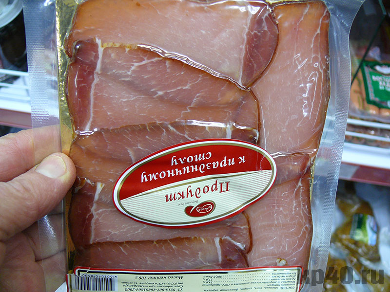 Балык свиной, срок годности истекает сегодня. Сотрудники прокуратуры не стали отправлять 5 упаковок в корзину. Просто попросили убрать с витрины. Что продавцы и сделали.