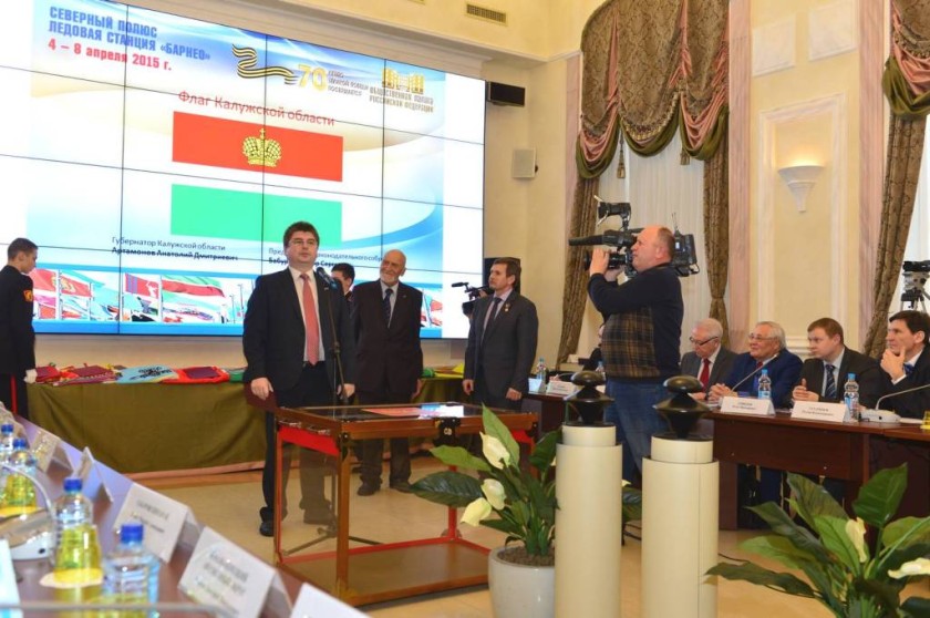 Флаги Калуги и Калужской области отвезут на Северный полюс в рамках проекта «Арктика-2015». В четверг, 29 января, в Москве полотнища передали академику РАЕН, профессору, известному телеведущему Николаю ДРОЗДОВУ.