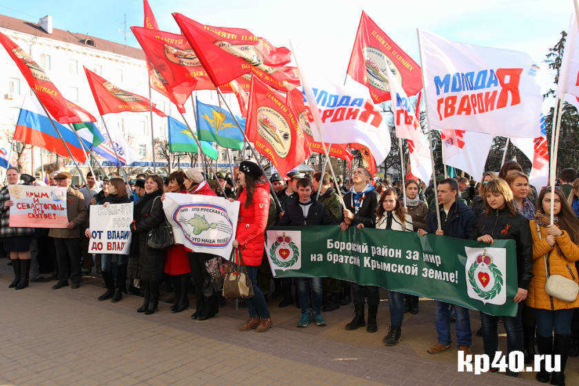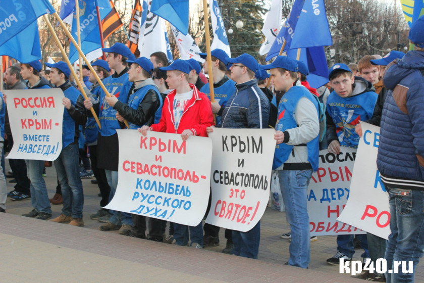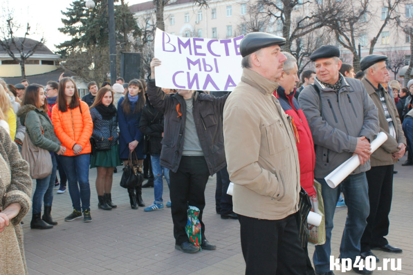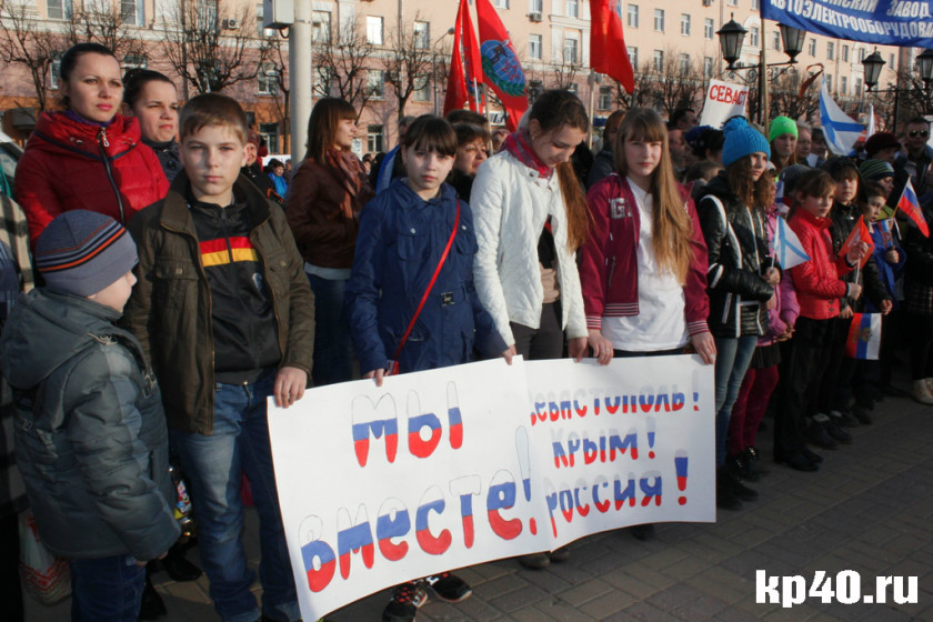 Митинги-концерты «Мы вместе» по случаю первой годовщины воссоединения Крыма с Россией в среду, 18 марта, прошли по всей стране. Не стала исключением и Калуга. Как и в прошлом году, мероприятие прошло на Театральной площади.