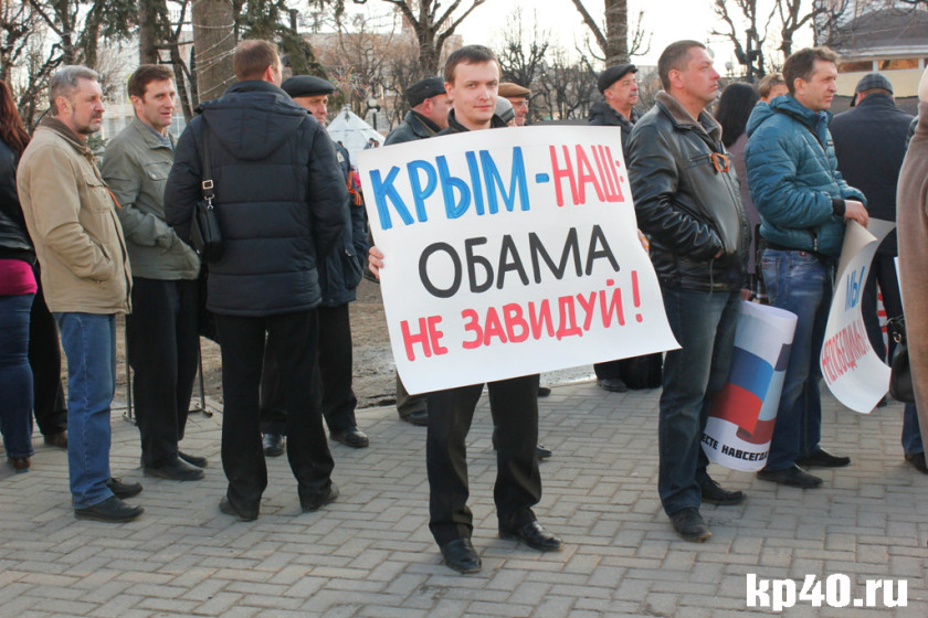 В моём персональном рейтинге плакатов первое место занял Владимир, сотрудник МАУ «Калугаблагоустройство». На его листе ватмана было написано: «Крым – наш: Обама не завидуй!»