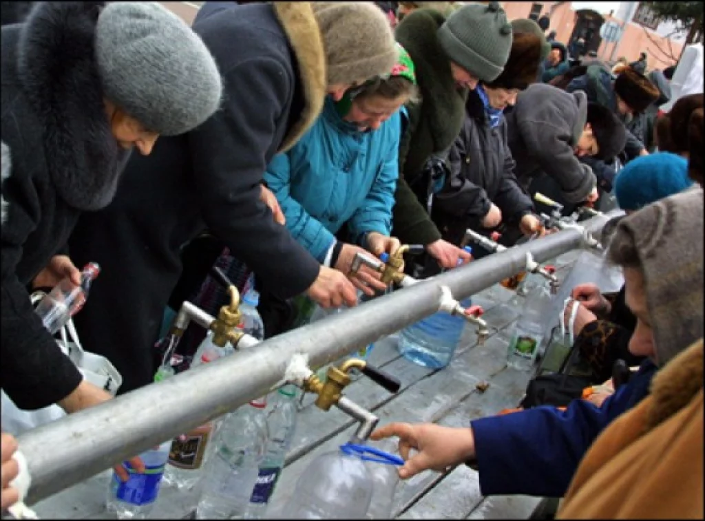 Обнинские старушки окропляют дверь молодой девушки святой водой и рисуют кресты