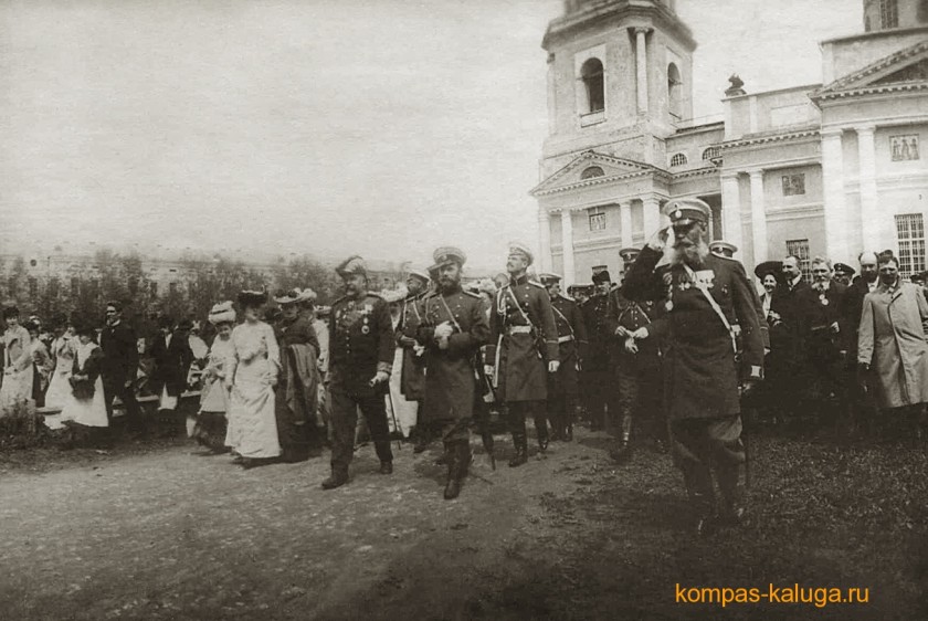 На фотографии, сделанной 7 мая 1904 года, император Николай II выходит из Троицкого кафедрального собора. Шла война с Японией, император решил вместе с цесаревичем побывать во всех губернских городах, чтобы морально поддержать войска, отбывающие на фронт.