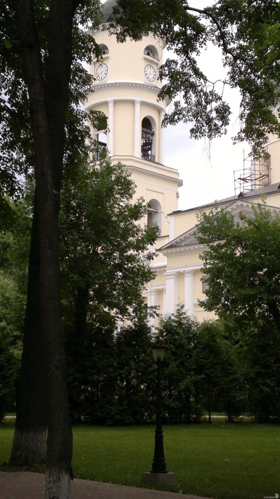 Говоря о парке, невозможно не упомянуть о Свято-Троицком кафедральном соборе. Его история изначально была достаточно трагична. Первый – деревянный Троицкий собор – сгорел ещё в XVI веке. На его месте в память о царе Федоре Алексеевиче воздвигли каменный. Но к концу XVIII века он пришел в ветхое состояние. Строительство нового собора затянулось надолго: началось в 1786 году, а закончилось лишь в 1819.