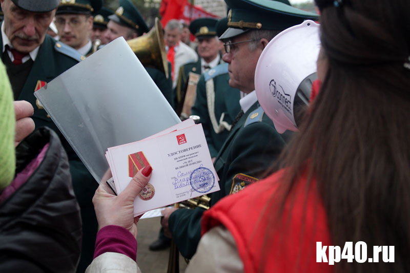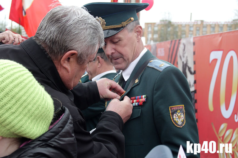 Настроение у собравшихся несмотря на унылую погоду было приподнятое. Поздравления с праздником слышались со всех сторон. Перед началом шествия первый секретарь Калужского обкома Николай Бутрин вручил памятные медали «70 лет Победы» некоторым участникам маёвки.