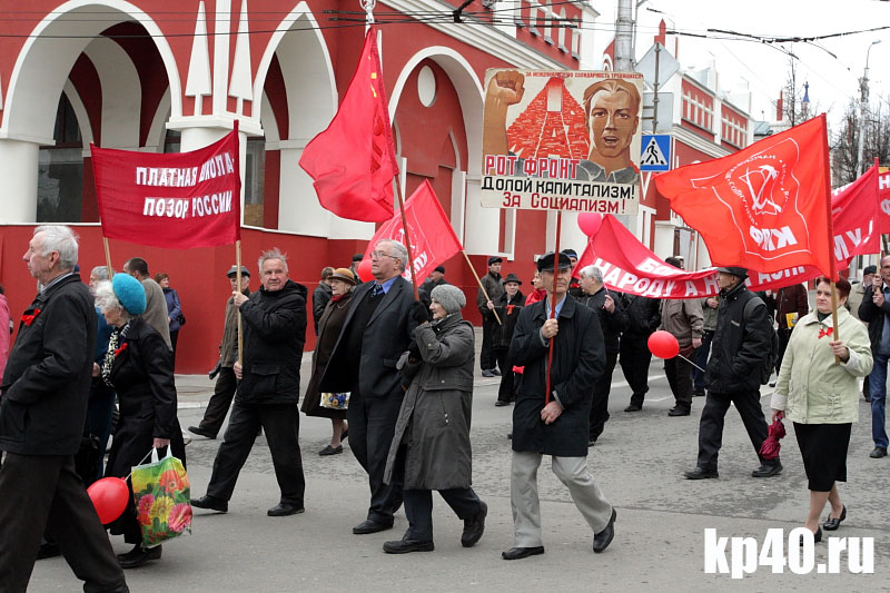 В это же самое время на площади Победы под красными знамёнами в количестве около 200 человек собрались участники второй колонны – члены регионального отделения КПРФ, для которых 1 Мая – праздник не только Весны и Труда, а прежде всего, Международной солидарности трудящихся.