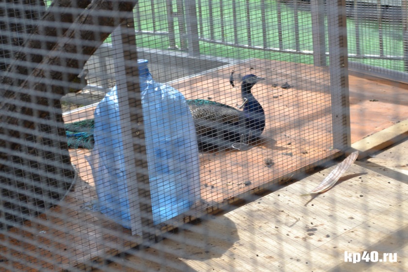 Павлин все время лежал на солнцепеке, практически не двигаясь. В его клетке стояли до краёв наполненные водой и едой миски, а вот продуктов жизнедеятельности – помета не было, будто птица сегодня и не ела.