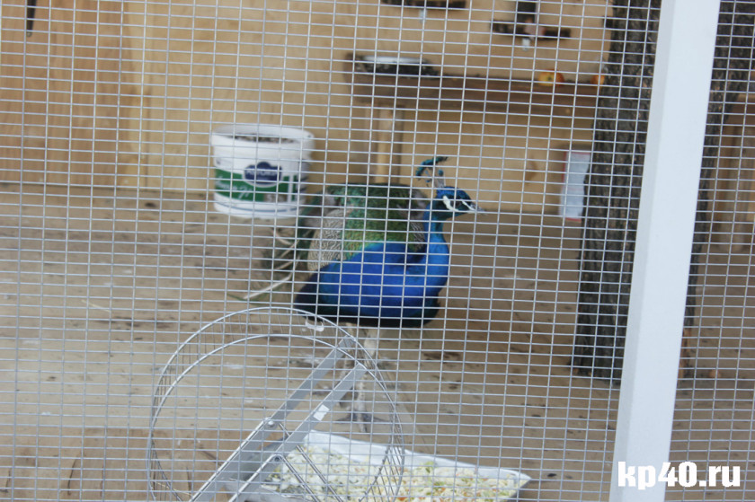 В вольерах мы заметили одну белку, лежащую на своём домике, остальных зверьков не было видно. Павлин беспокойно ходил из одной клетки в другую. Еды по-прежнему было вдоволь.