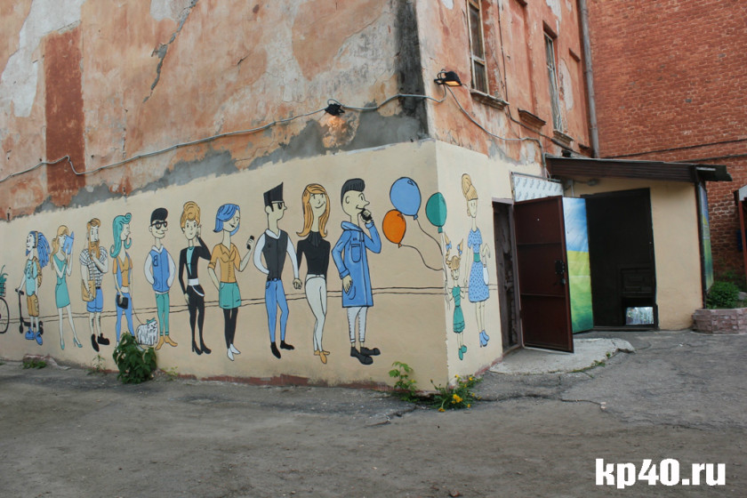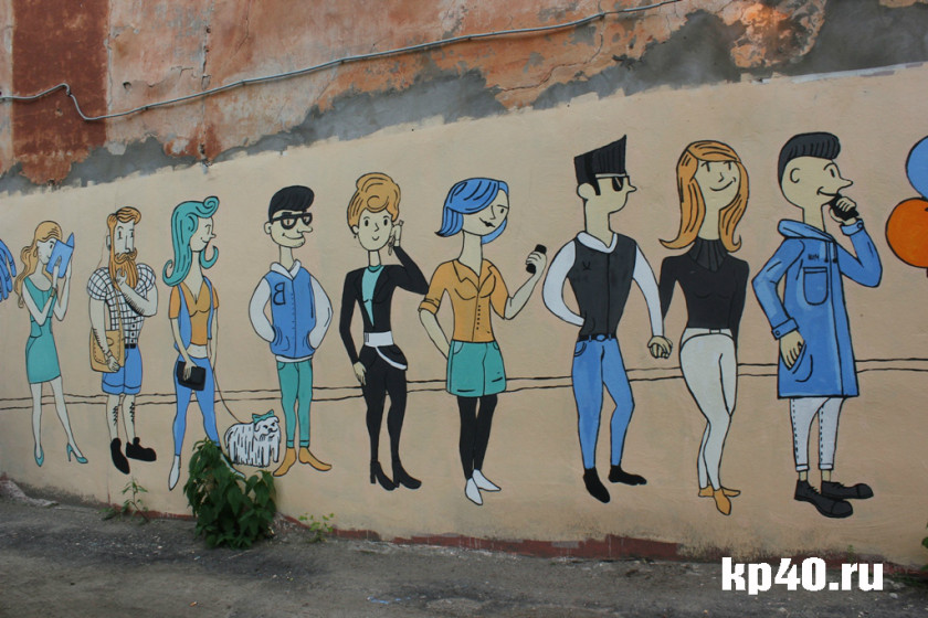 На днях в Воскресенском переулке в Калуге в районе учебного корпуса КГУ появился рисунок: люди самого разного возраста стоят в очереди.