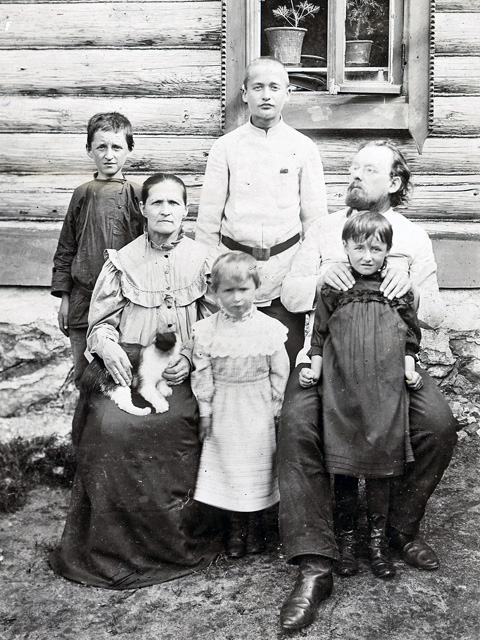 Семья Циолковского в начале ХХ века. Справа от отца сыновья Игнатий, Иван. Рядом жена Варвара Евграфовна. Впереди дочери: младшая Анна и средняя Мария.