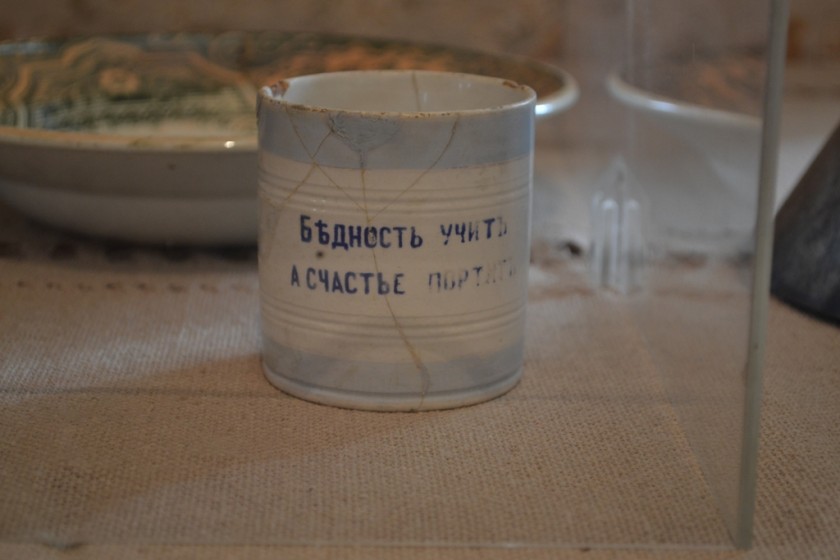 Кружка Константина Эдуардовича с надписью: «Бедность учит, а счастье портит».