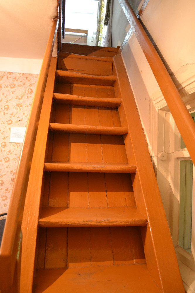Расстояния между ступеньками равны шагу великого учёного. Космонавты, побывавшие в доме-музее, сравнивают лестницу с трапом космического корабля.