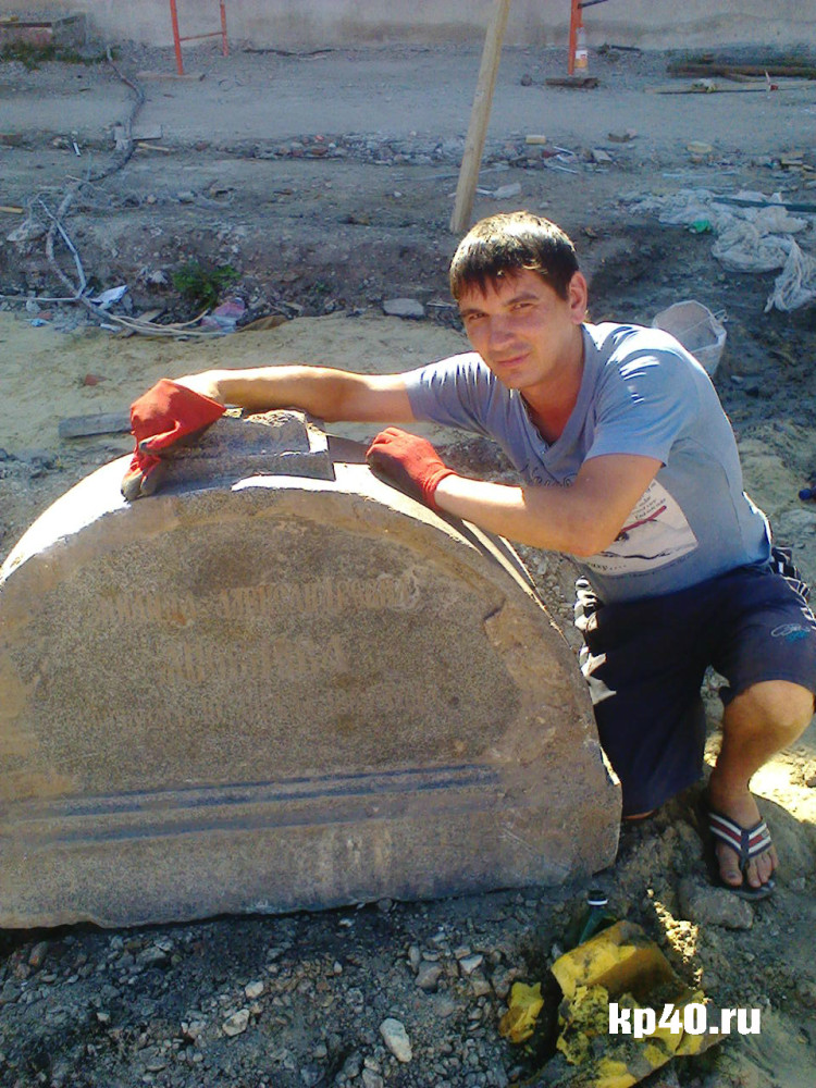 Нашедший надгробие строитель Алексей Митрохин.