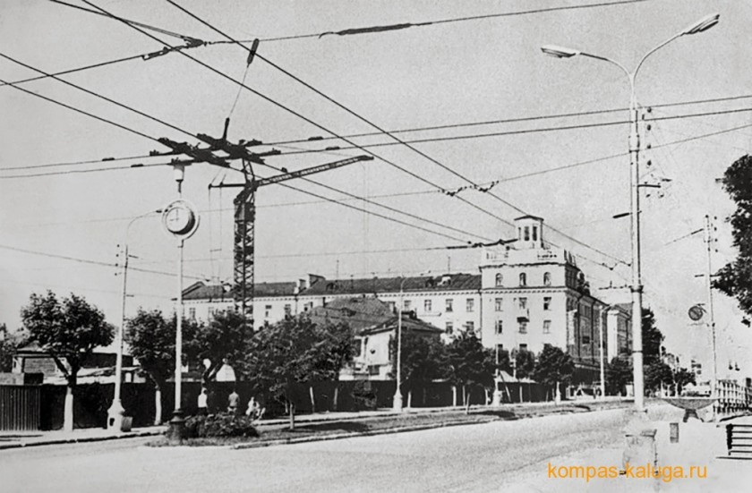 Лето 1961 года: слева - Клуб работников торговли (бывший дом Купцова), справа - строительство универмага «Калуга». Фото из архива Ольги Фомочкиной.