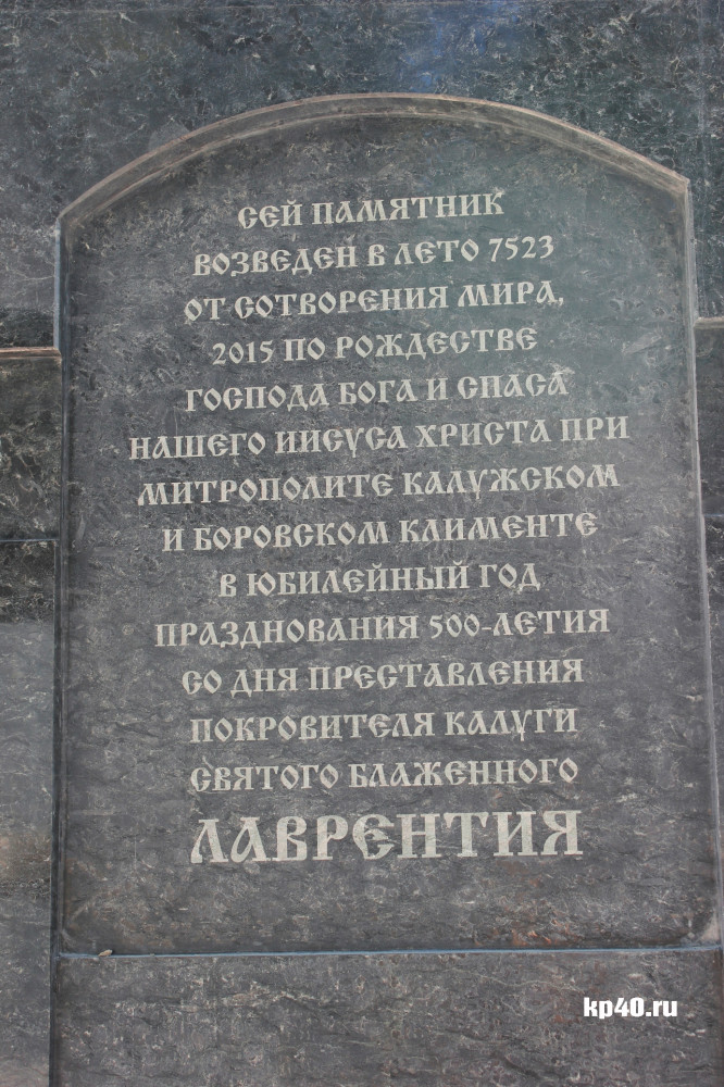 В среду, 12 августа, в Калуге возле Свято-Троицкого кафедрального собора установили памятник святому Лаврентию. Торжественно откроют его в субботу, 22 августа - в день памяти святого. Специально ради этого события перенесли и День города.