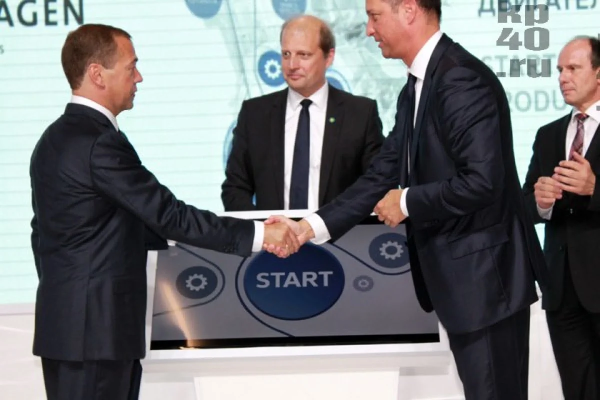 Главной целью посещения нашего города стала торжественная церемония открытия завода автомобильных двигателей внутреннего сгорания компании «Фольксваген Груп Рус». Еще в 2012 году именно Дмитрий Медведев заложил в Калуге первый символический камень в строительство нового предприятия.
