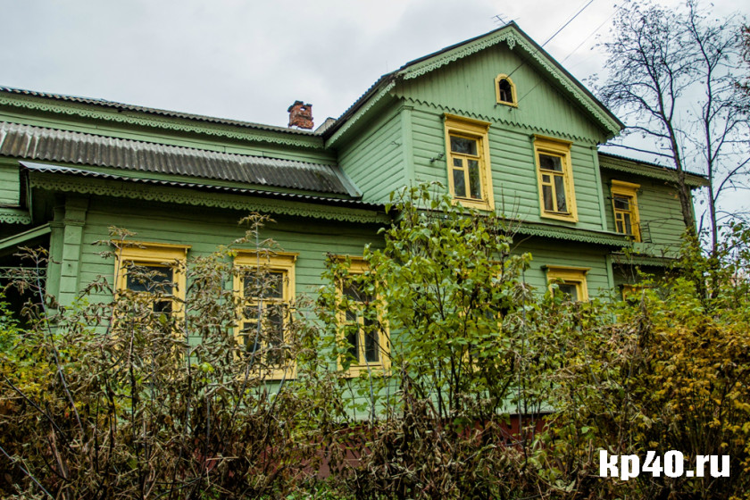 Деревянный двухэтажный дом резко выбивается из однотипных советских построек. В избе мы насчитали четыре входа, один из которых ведёт в подвал, где сейчас расположен офис частной компании.