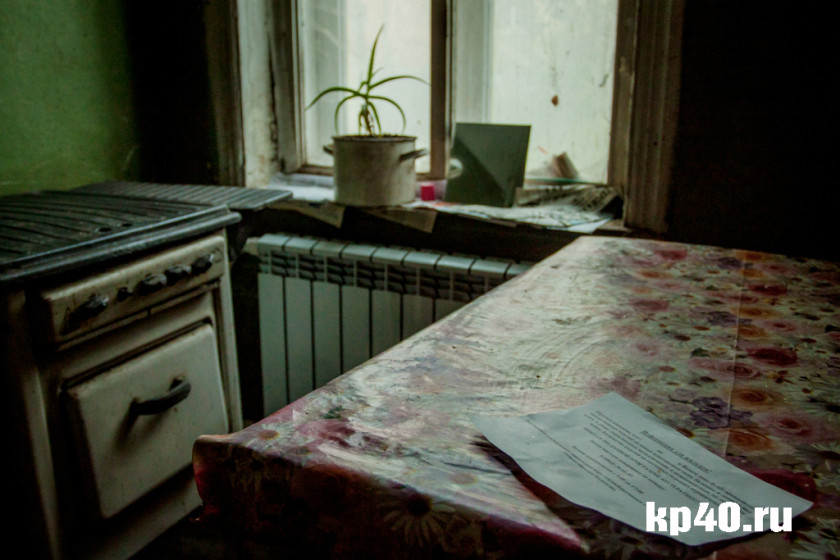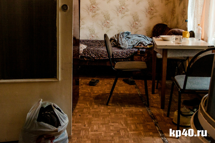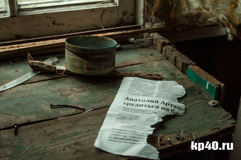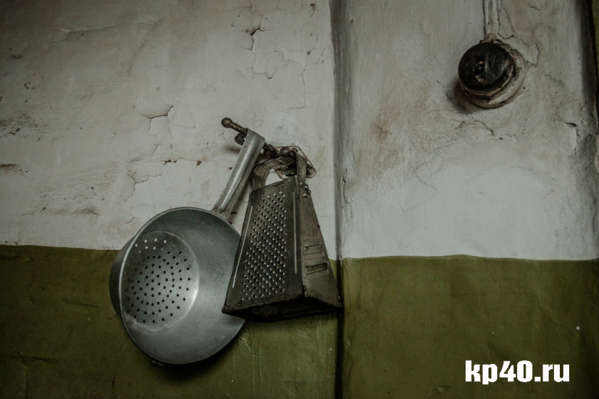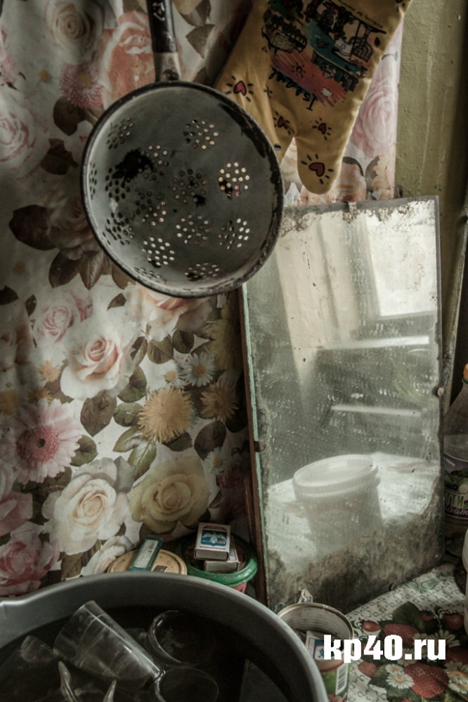 Вокруг нее валяются старый телевизор, сломанный диван, посуда, бельё. Складывается ощущение, что владелец сбежал, позабыв все свои пожитки. Да и дверь не запер.