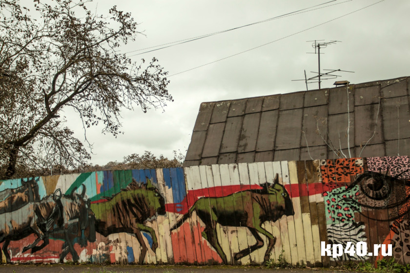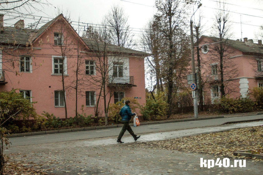 На калужской улице деревянные и многоэтажные домики соседствуют с заводом, детскими, спортивными и госучреждениями, гостиницами.