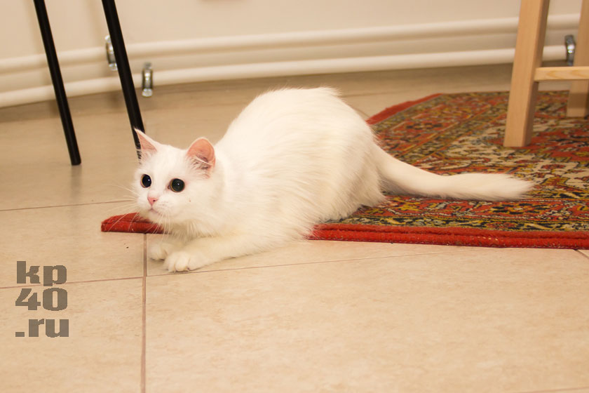 Разноглазая белоснежная Форест — любительница ласок и релакса на ручках у посетителей.