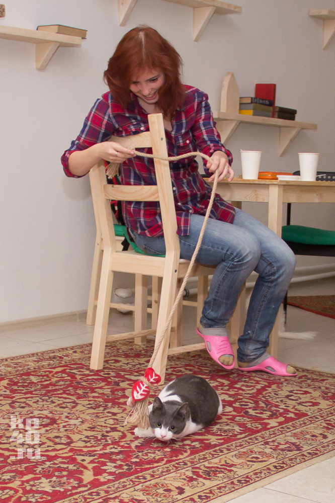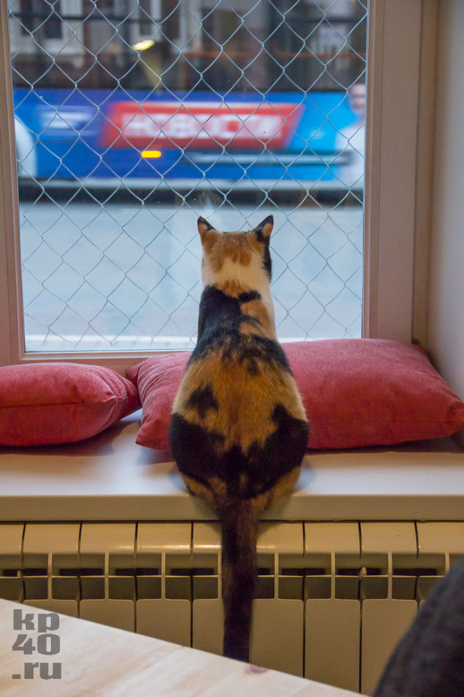 Кафе двухэтажное — для людей первый этаж, для кошек — специальный второй. В контракте у усатых прописана только одна обязанность — быть в кафе. Дальше полная свобода творчества.