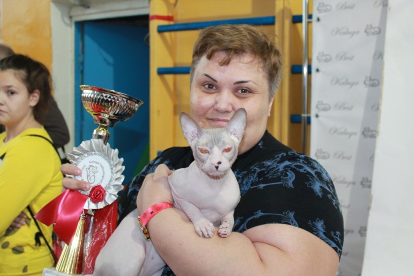 Донской сфинкс Луис. На выставке он получил первое место среди «лысиков», титул «Юный чемпион» и 4 место в монопородном ринге.