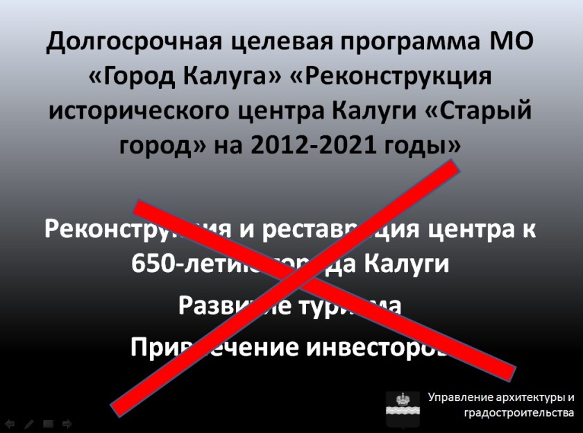 Под угрозой реализации оказалась принятая ещё в 2012 году долгосрочная целевая программа реконструкции и реставрации исторического центра Калуги «Старый город».