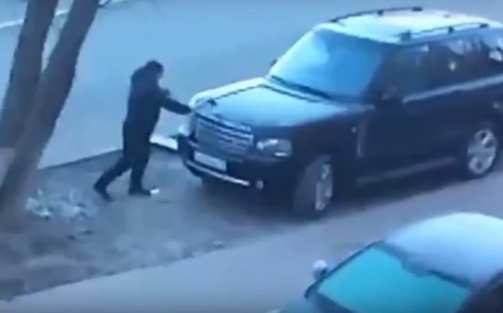 На второе место мы поставили запись соседских разборок, жертвой которых стал ни в чем не повинный автомобиль.