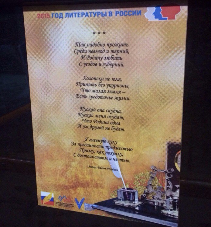 - Не смотря на то, что Год Литературы в России официально завершился 14 декабря, мы считаем, что он вообще не должен заканчиваться, - рассказала нам председатель молодежного парламента Юлия ГЛУХОВА. - Это такой подарок жителям и гостям города. Мы хотим привлечь внимание, в первую очередь молодежи, к творчеству поэтов-земляков. Ведь общественным транспортом пользуется в основном молодёжь.