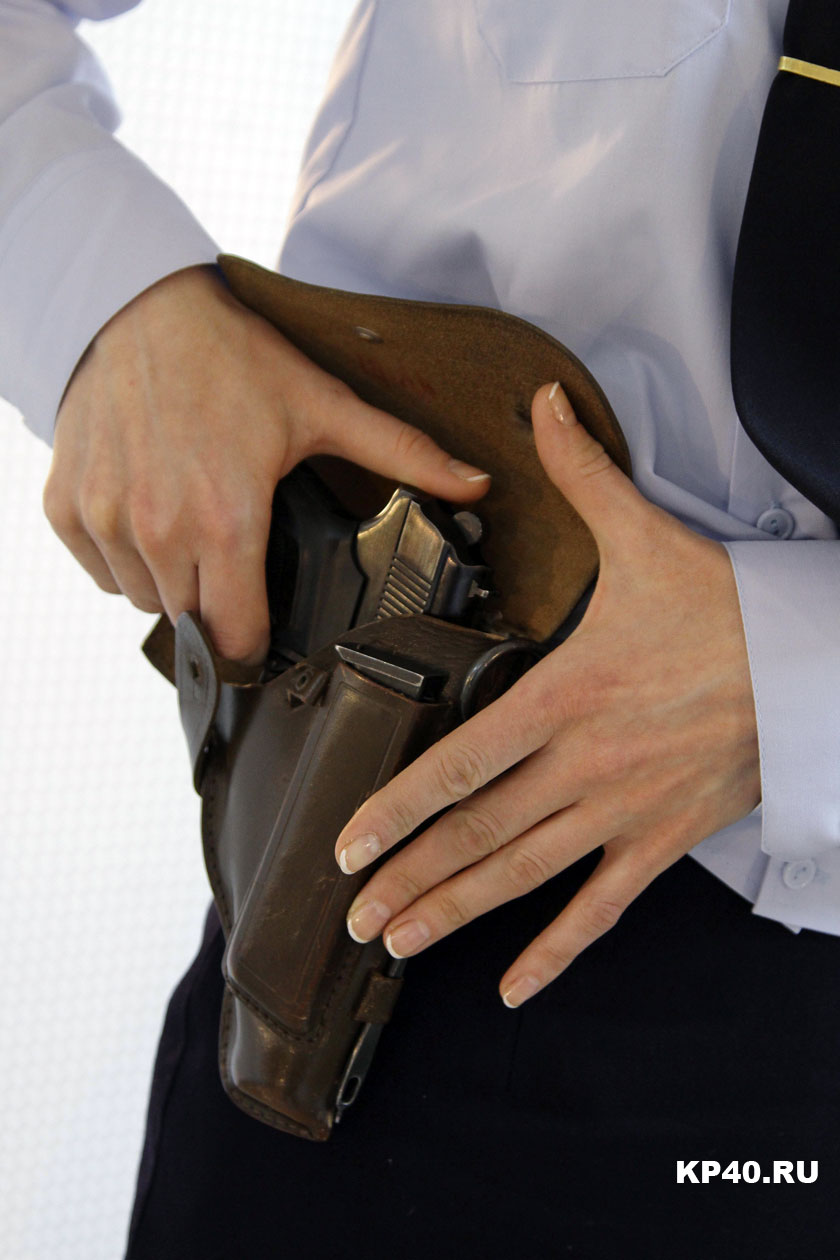 - Достаём оружие из кобуры, хвастаться им друг перед другом не надо, - напутствует конкурсанток сотрудник отдела профессиональной подготовки областного УМВД Дмитрий Рожков. – Ствол пистолета смотрит только в сторону мишени. Вверх оружие поднимать не надо.